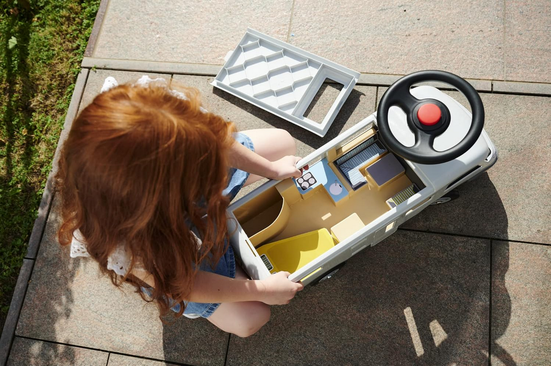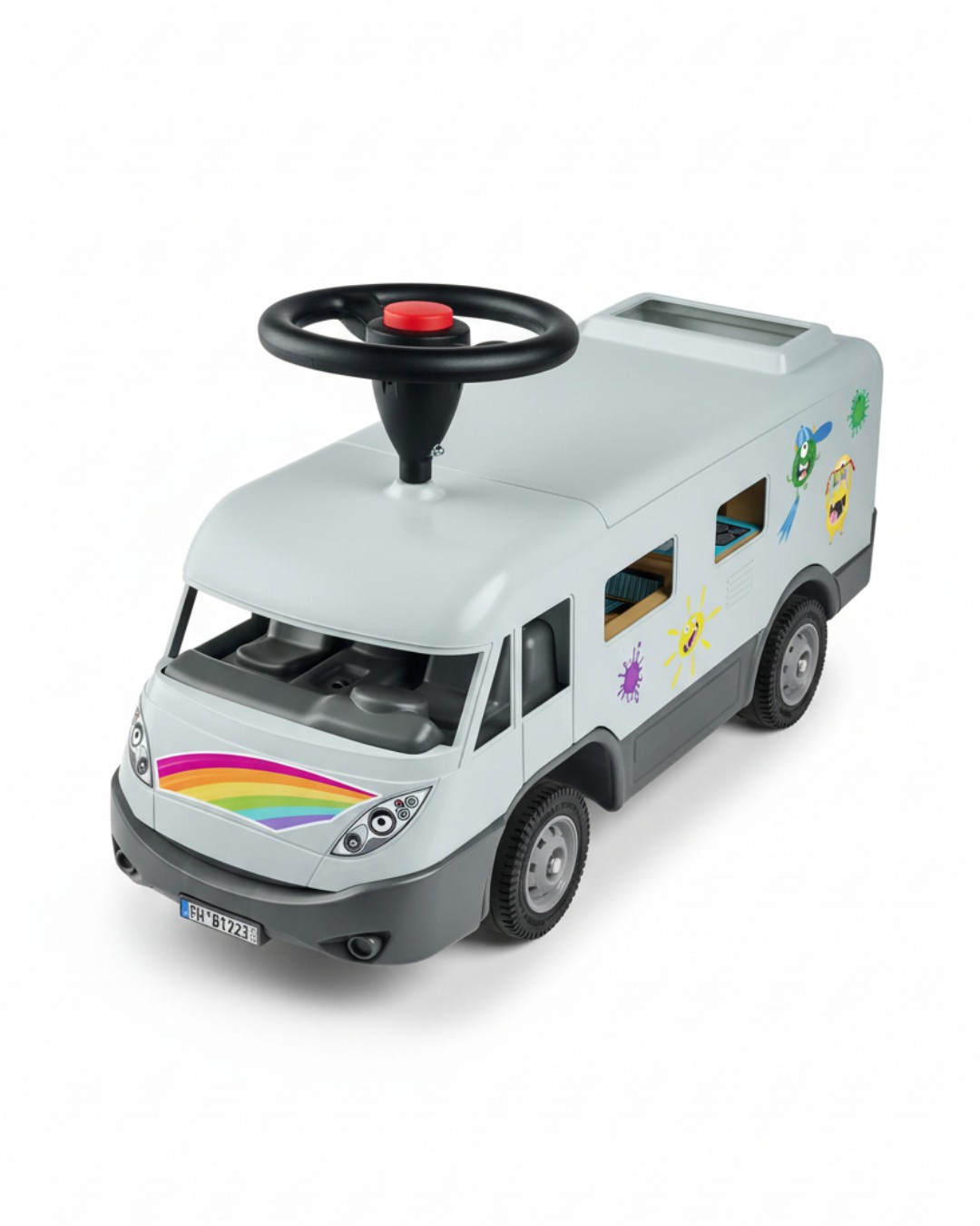 Çocukların hayal gücünü harekete geçiren BIG Camper, hem bin-sür oyuncak hem de oyun aracı olarak iki işlevi bir arada sunar. Direksiyonlu yapısı sayesinde çocuklar aracı kendileri sürebilir, kamp temalı tasarımıyla da oyunlarını zenginleştirebilir. Ev içinde ya da dış mekânda güvenle kullanılacak şekilde tasarlanmıştır.