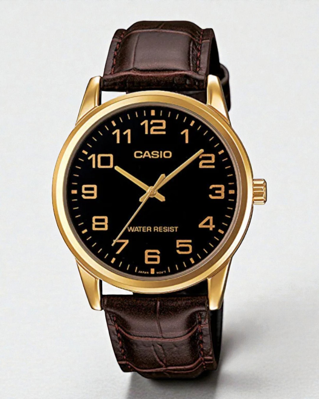 Zamansız tasarımı ve günlük kullanıma uygun yapısıyla Casio MTP-V001GL-1BUDF, klasik saatlerden vazgeçmeyen erkekler için net bir tercih. Siyah kadranı, bakır tonlu kasası ve kahverengi deri kordonu ile hem ofis stiline hem de günlük kombinlere rahatça uyum sağlar.