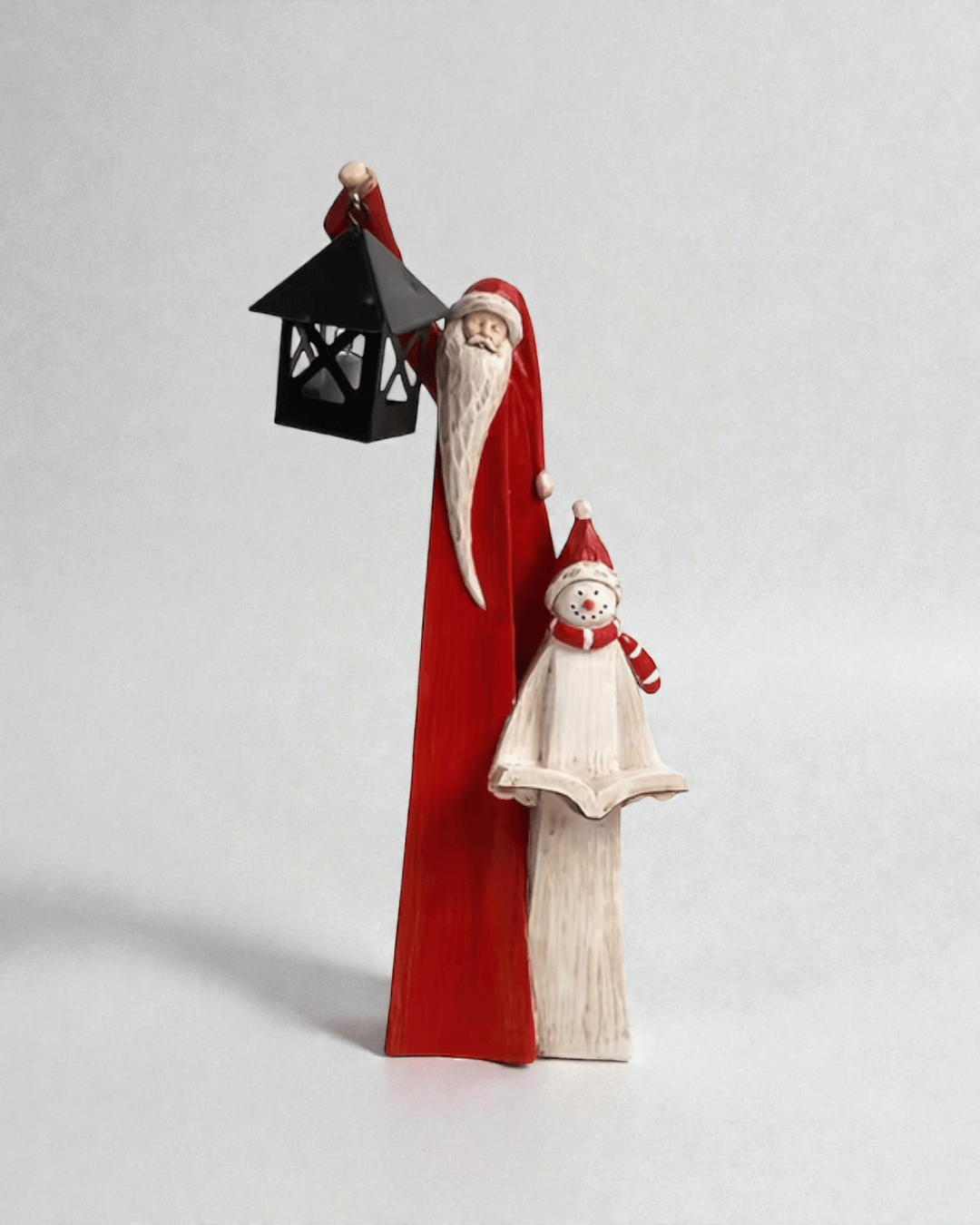 Uzun ve ince silueti sayesinde raflarda, pencere önlerinde, şömine üstlerinde ya da masa üzerinde çok şık durur. İskandinav dekorasyonun sevdiği sakin tonlar ve sade figür dili burada birebir yakalanmış. Santa figürünün yanında yer alan kardan adam detayı sahneyi daha sıcak ve hikâyeli hale getiriyor.
