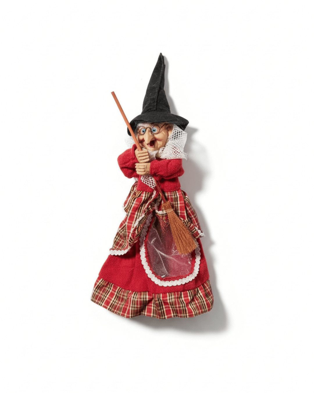 Dekorasyonuna eğlenceli ve karakterli bir dokunuş eklemek isteyenler için ideal bir parça. Bu asma cadı figürü, detaylı yüz ifadesi, kırmızı tonlarda kumaş elbisesi ve elindeki süpge detayıyla bulunduğu ortamda hemen dikkat çeker.