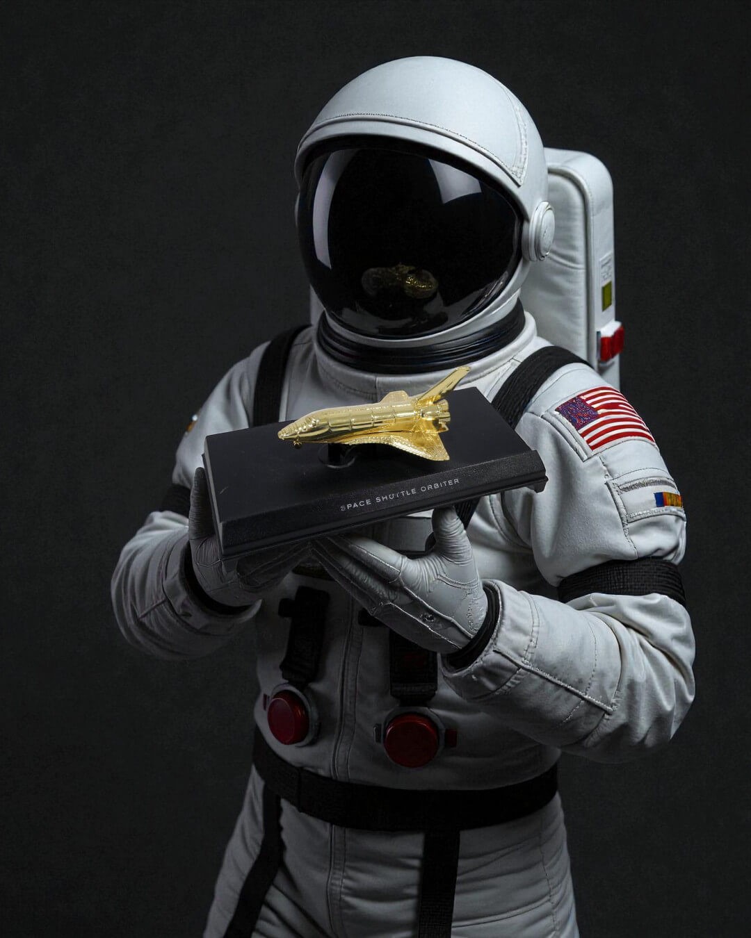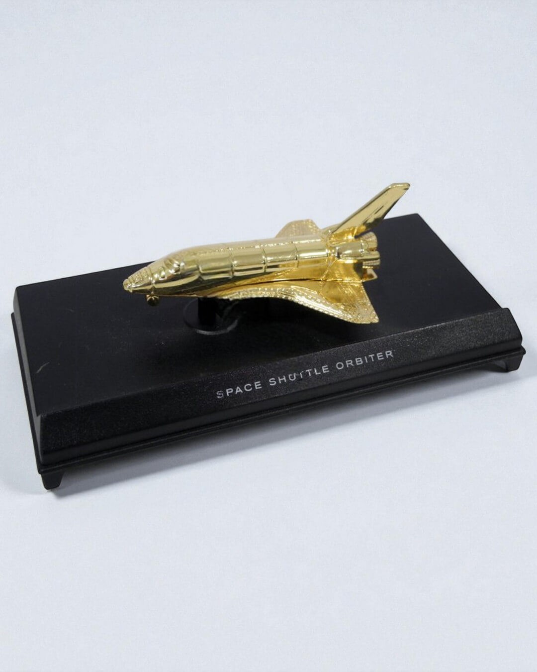 Uzay meraklıları ve koleksiyon severler için özel olarak tasarlanan Smithsonian Gold Space Shuttle Orbiter, 24 ayar altın kaplamalı döküm gövdesiyle gerçek bir koleksiyon değerine sahiptir. Smithsonian Institution küratörleri tarafından onaylanmış bu model, detaylı işçiliği ve özgün tasarımıyla uzay tarihine saygı duruşu niteliğindedir. 15 cm uzunluğunda olan bu zarif model, sergileme standı ile birlikte gelir.